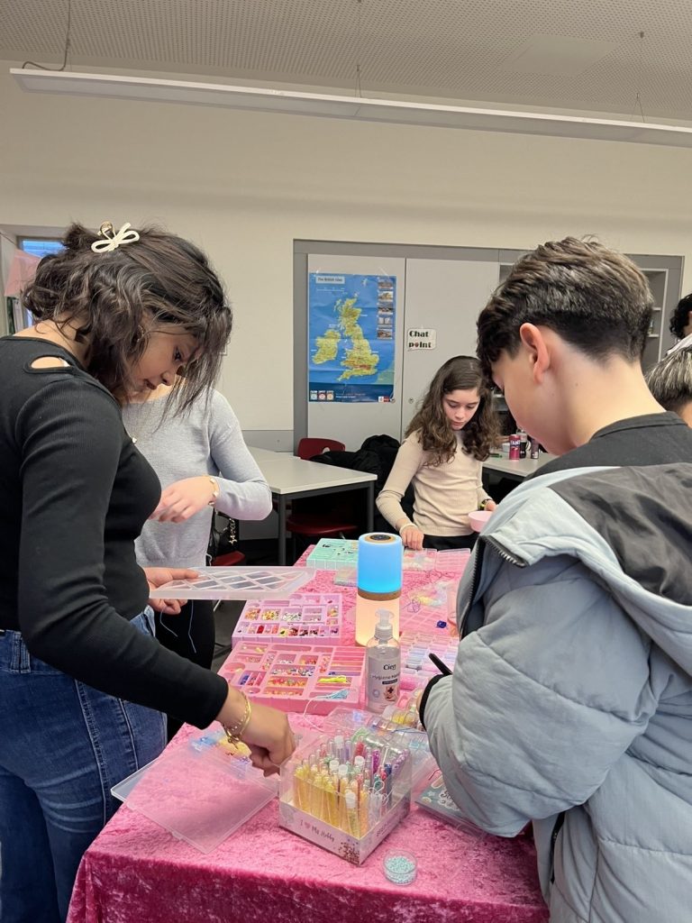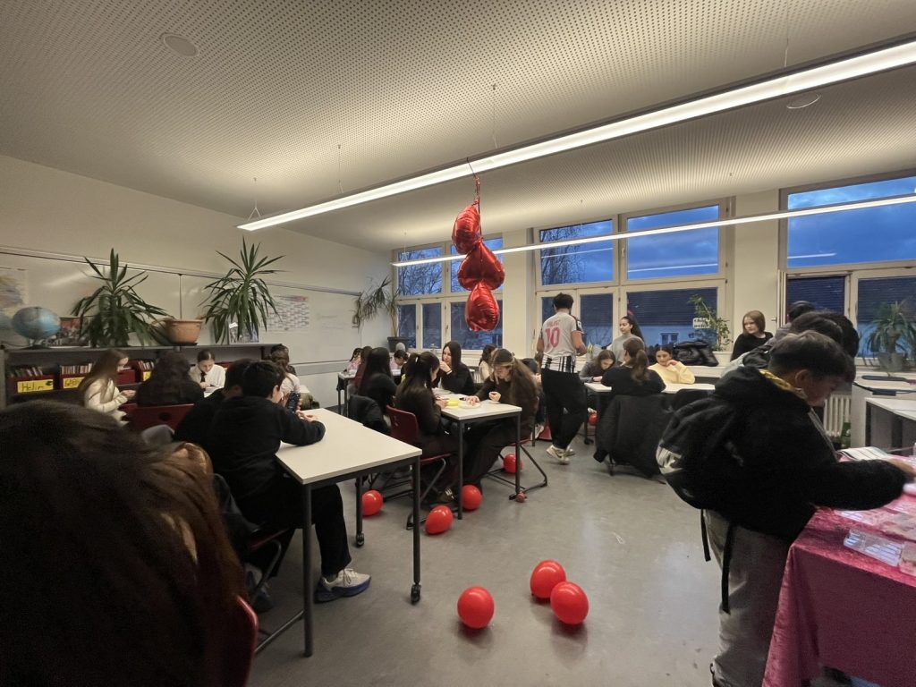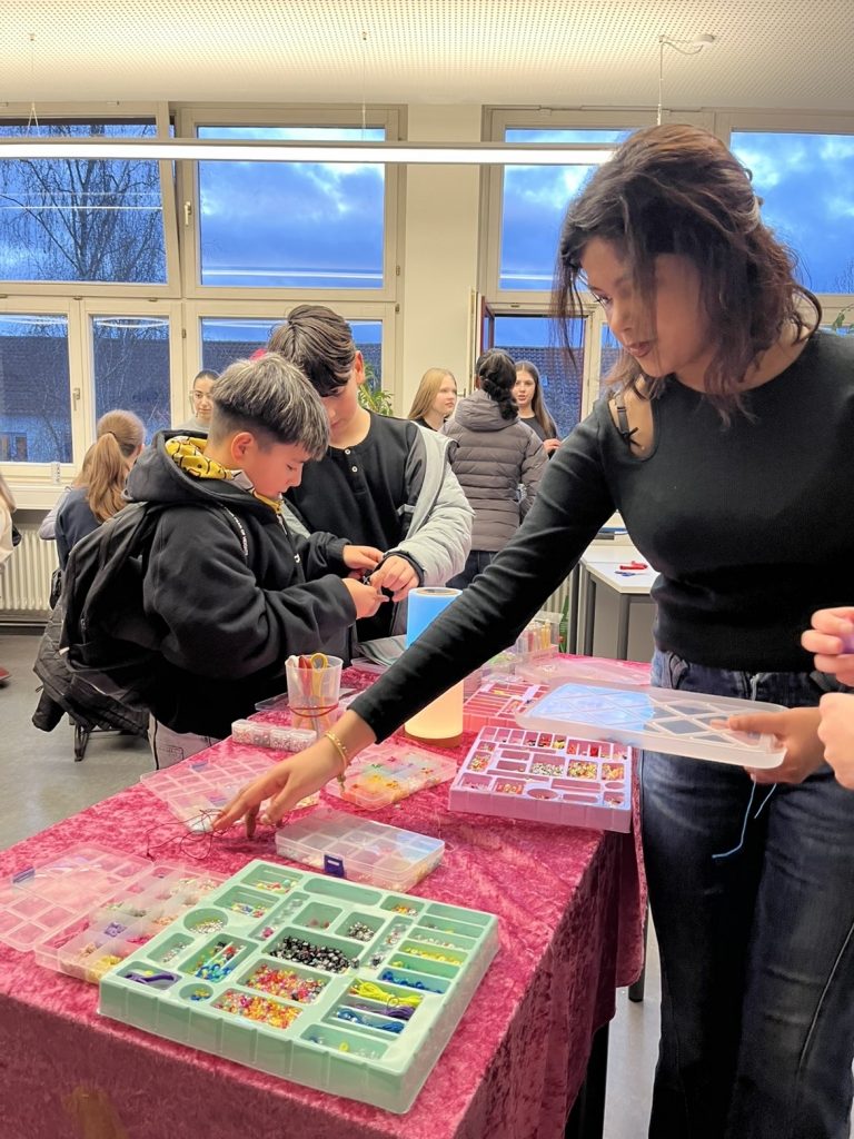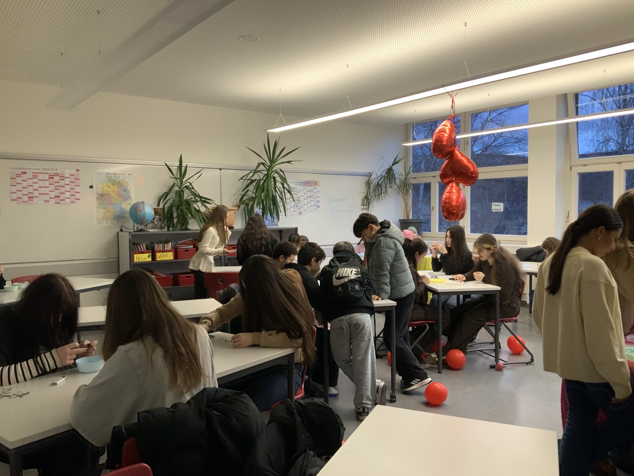 Auch dieses Schuljahr veranstaltete die SMV an unserer Schule eine Valentinstagsaktion. Schülerinnen und Schüler aller Jahrgangsstufen hatten die Möglichkeit, individuelle Armbänder zu knüpfen. Diese konnten anschließend verschenkt werden, zum Beispiel an eine Person, die man besonders mag oder für sich selbst behalten werden.