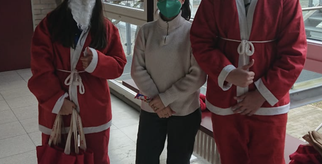 Große Freude war am Montag innerhalb der Schülerschaft der RBR Stuttgart zu erkennen. Es stand nämlich die traditionelle Nikolausaktion auf dem Tagesplan, die schon seit mehreren Jahren regelmäßig von der SMV organisiert wird. Unsere Schülersprecherin Senna sowie Maltin aus der Klasse 9a besuchten am Vormittag alle Klassen und verteilten kleine Geschenke und Überraschungen an die Schüler*innen. Auf dem Bild sehen wir die beiden neben unserer SMV-Lehrerin, Frau Aneta Letunica, stehen.
