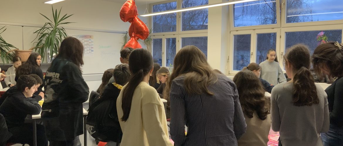 Auch dieses Schuljahr veranstaltete die SMV an unserer Schule eine Valentinstagsaktion. Schülerinnen und Schüler aller Jahrgangsstufen hatten die Möglichkeit, individuelle Armbänder zu knüpfen. Diese konnten anschließend verschenkt werden, zum Beispiel an eine Person, die man besonders mag oder für sich selbst behalten werden.