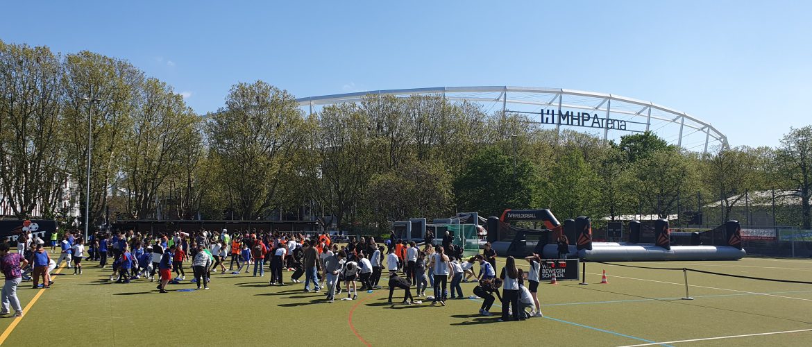 Auf dem Sportgelände gegenüber der MHPArena in Stuttgart-Bad Cannstatt erwartete die Schülerinnen und Schüler ein abwechslungsreicher Parcours mit insgesamt sechs verschiedenen Modulen. In klassenweisen Teams traten die Kinder gegeneinander an, sammelten Punkte und stellten ihr Können, ihre Ausdauer und ihren Teamgeist unter Beweis.