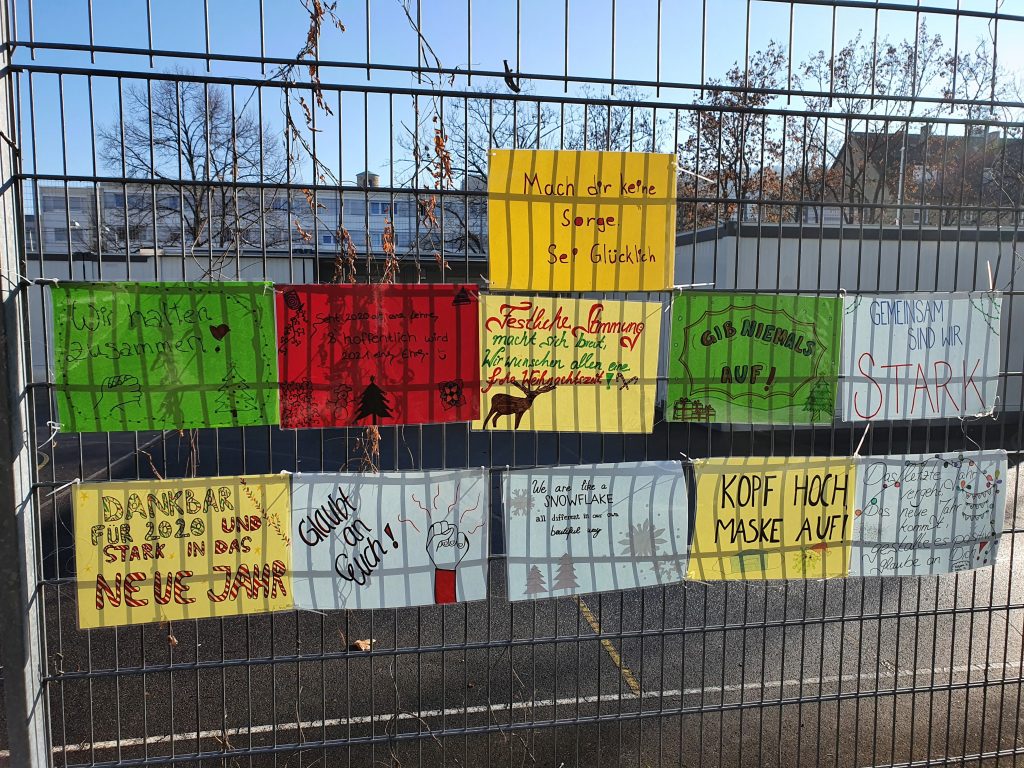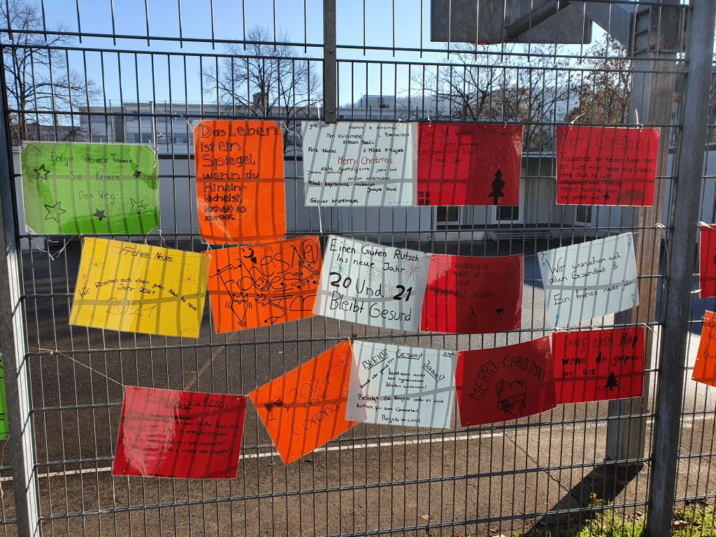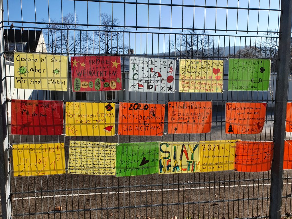 Das Jahr neigt sich dem Ende zu. Durch die Corona-Pandemie war 2020 für uns alle ein besonders herausforderndes Jahr. Leider konnten wir zum Abschluss des Jahres keinen gemeinsamen Gottesdienst feiern. Als gemeinsame Schulaktion haben die Schülerinnen und Schüler aller Klassen Spruchkarten gestaltet, die verschiedene Botschaften enthalten: Weihnachts- und Neujahrsgrüße, Mutmachsprüche und Durchhalteparolen. Gemeinsam ist diesen Botschaften, dass sie die Hoffnung ausdrücken, 2021 werde für uns alle ein besseres Jahr. Auch zeigt sich aus den Formulierungen, dass unsere Schülerschaft im „Schulalltag unter Pandemie-Bedingungen“ an Reife, Stärke und Gemeinschaft dazugewonnen hat.